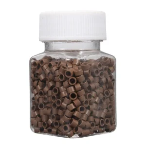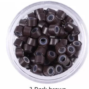 Microringen met silicone, kleur # 3 Donker Bruin, voor het inzetten van hairextensions. Diameter 5 mm 1000 stuks.