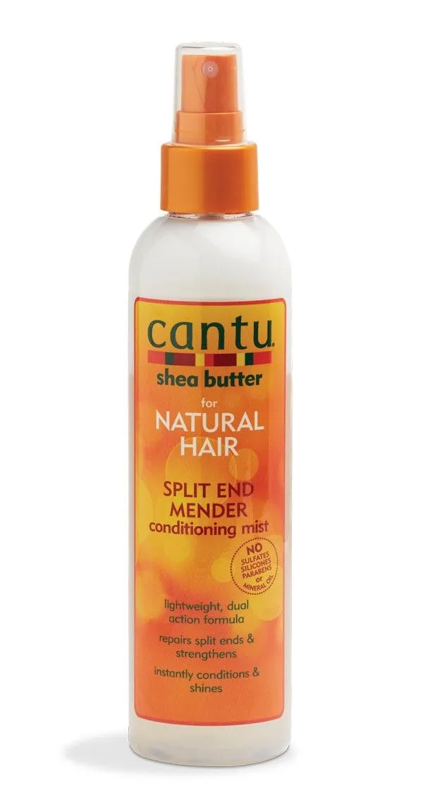 Cantu Shea Butter for Natural Hair Split End Mender Conditioning Mist, deze speciale formule repareert en verzorgt gespleten haarpunten. Verlengt en versterkt het haar, voor mooie glanzende krullen. Gemaakt van pure Shea butter, geformuleerd zonder agressieve ingrediënten. Bevat geen Mineralen, Sulfaten, Parabenen, Siliconen, ed.
