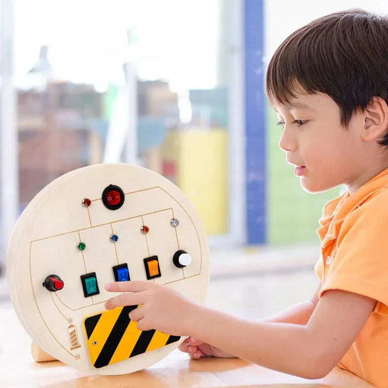 Ontworpen met zachte leuke verlichting, als de knop wordt ingedrukt zal het lampje gaan branden. Leert kinderen lichtschakelaars aan te zetten, draden aan te sluiten en op knoppen te drukken.