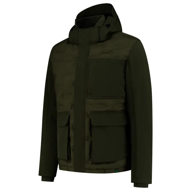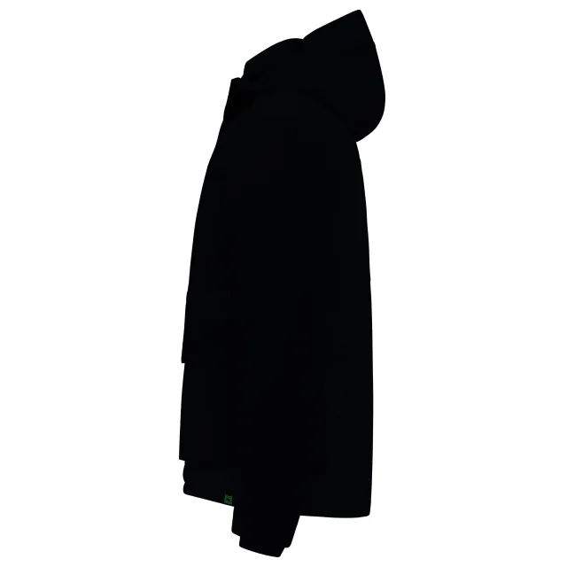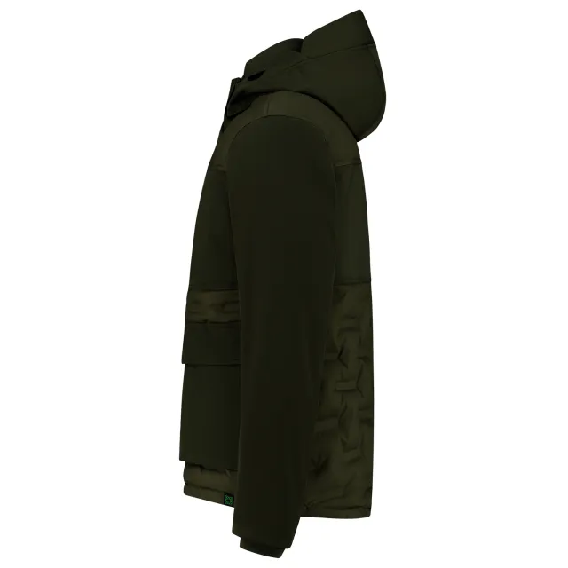 Het puffer jack heeft een comfortabele ribkraag in de hals. Ook de manchetten zijn voorzien van een ribmanchet. De capuchon heeft een uitsparing aan de zijkant voor extra zicht en is volledig afneembaar middels drukkers. Met de verdekte koordstopper kun je de capuchon verstellen. Aan de binnenkant van de werkjas zit een uitneembare rib windvanger met antislip elastiek. De onderkant van de werkjas is verstelbaar middels het koord aan de binnenzijde. Er zijn voldoende opbergmogelijkheden: twee binnenzakken, borstzak met rits en de zakken op het voorpand hebben zowel aan de boven- als aan de zijkant een ingang die ook afsluitbaar is. Vanwege de puffer look is er op het linker voorpaneel en het achterpand gebruik gemaakt van constrast softsell, zodat je de werkjas kunt bedrukken. Er is ook een printerrits aanwezig. Maak je outfit compleet met de overige items uit de Rewear collectie.