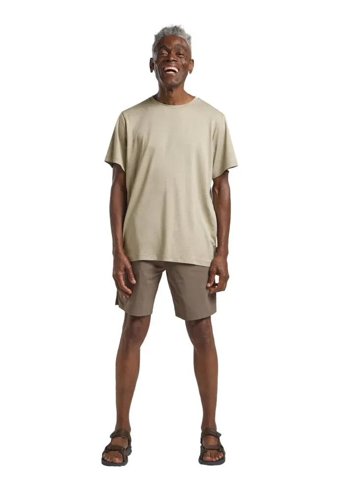 Dit T-shirt is ontworpen met de actieve reiziger in gedachten. Het ademende en vochtregulerende materiaal houdt je koel en droog, zelfs op de warmste dagen. En dankzij de snel drogende eigenschappen is het shirt in een mum van tijd weer klaar voor gebruik na een wasbeurt. De anti-geur technologie zorgt ervoor dat je je altijd fris voelt, zelfs na een lange dag vol avonturen.