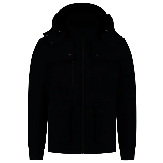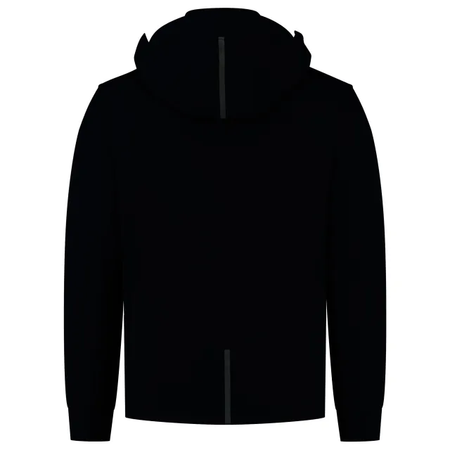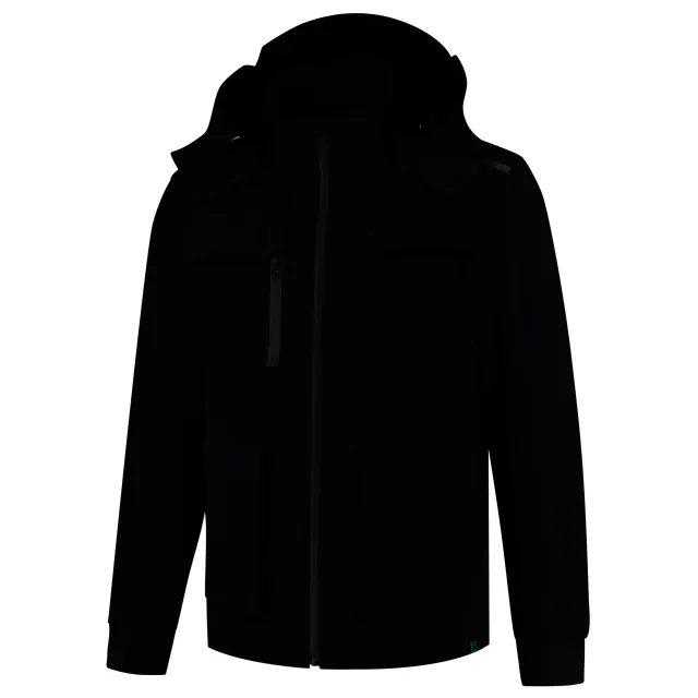De uitneembare windvanger met antislip elastiek zorgt ervoor dat er geen wind onder jouw jas kruipt. Er zijn voldoende zakken aanwezig om al jouw handige work tools in op te bergen: zakken op het voorpand met intast aan de boven- en zijkant, twee binnenzakken, twee borstzakken afsluitbaar met drukkers en de rechter borstzak heeft een dubbele intast die met rits afsluitbaar is. De capuchon heeft een uitsparing aan de zijkant voor extra zicht en is volledig afneembaar middels drukkers. Om extra zichtbaar te zijn in het donker, is er op de schouders, de capuchon en op het achterpand een reflecterende print toegevoegd. Er is ook een printerrits aanwezig zodat je de jas eenvoudig kunt bedrukken. Maak je outfit compleet met de overige items uit de Rewear collectie.