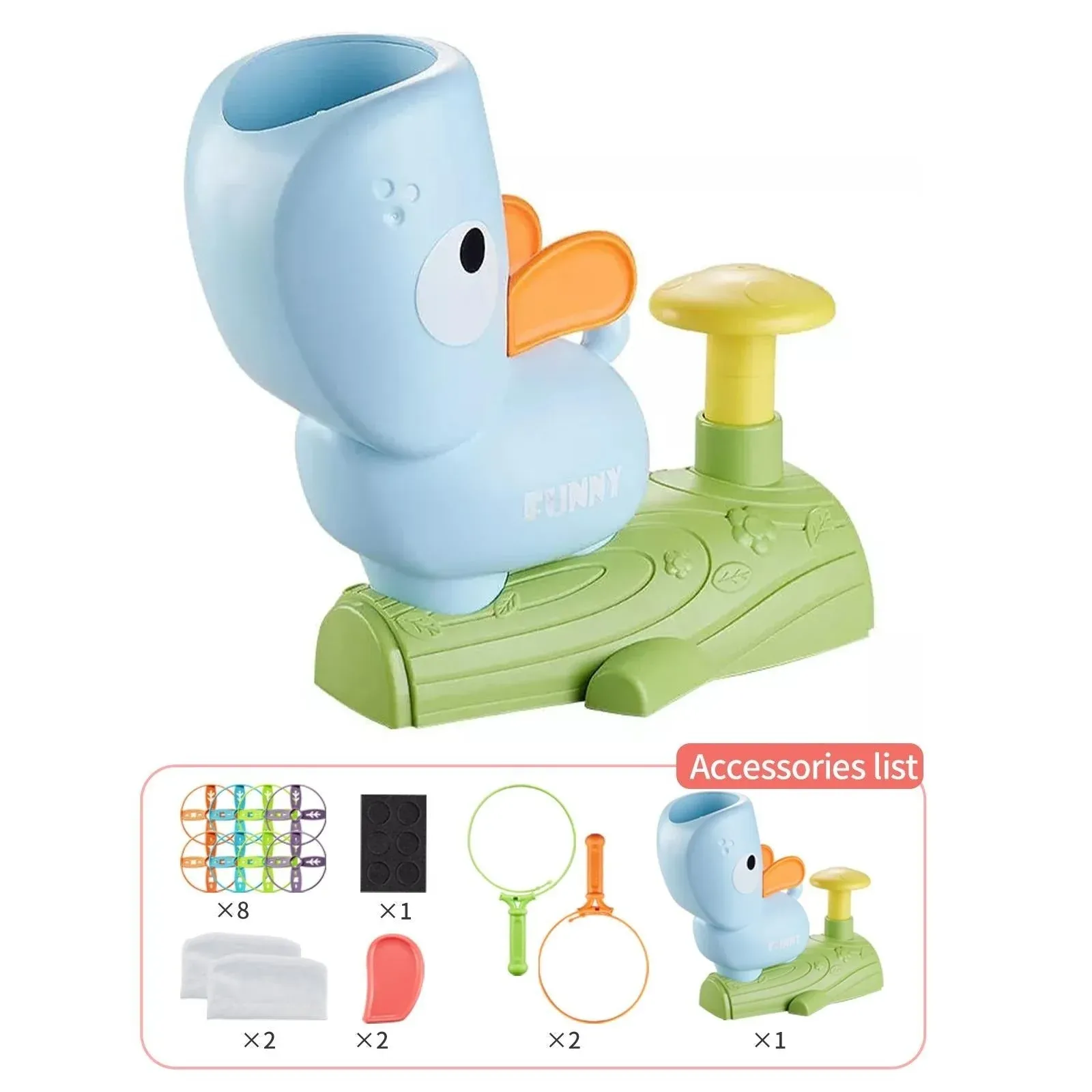 Dit innovatieve vliegende schijf-speelgoed is ideaal voor kinderen die van actie houden. Met de Vliegende Eendje™ kunnen ze schijven tot wel 15 meter de lucht in schieten! **Ze zullen het geweldig vinden om de schijven te vangen met het bijgeleverde net!**