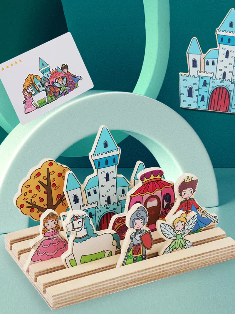 Kies een kaart uit de stapel en probeer de afbeeldingen na te maken, van makkelijk tot moeilijk. Je kind zal steeds beter worden en uiteindelijk unieke combinaties creëren! Dankzij de eindeloze mogelijkheden wordt het nooit saai!